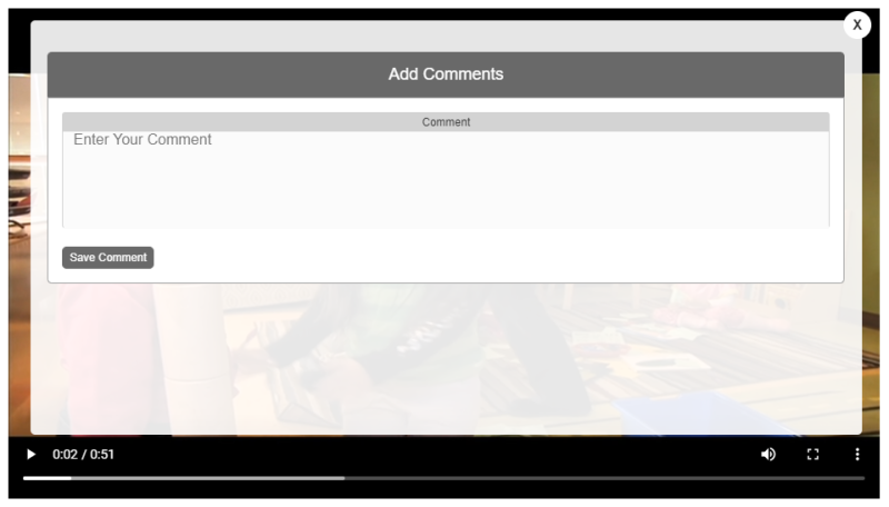 - To add a timestamped comment, click directly on the video at the time you want to add the comment. The video will pause and display the comments form.