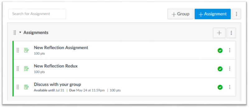 - Click on the Assignments link in the left menu to see a list of assignments associated with the course.