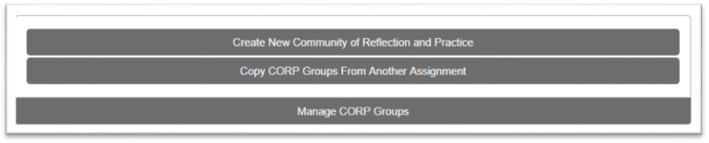 - Create groups for Community of Reflection Practice (CORP) Assignments